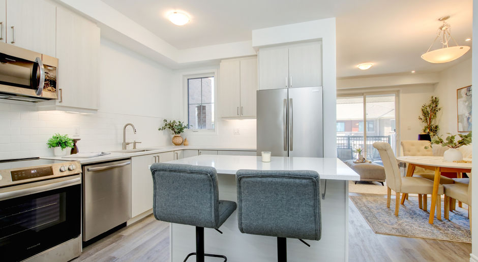 mpeccable and move-in ready! This 2 year old trendy freehold Mattamy townhome is situated on a quiet court in East Milton. Modern kitchen boasts stainless steel appliances, quartz countertops, tile backsplash and island/breakfast bar. Dining room and family room lead to a spacious balcony; a great flow for entertaining. The hardwood staircase leads to a spacious upper level with 3 spacious bedrooms including a primary with 3pc ensuite bath (seamless glass shower) and juliette balcony. Totally carpet free and well cared for home. Great location for young families and commuters. Just minutes to the 401, 407, Milton Go Station, parks, schools, supermarkets, and shopping.